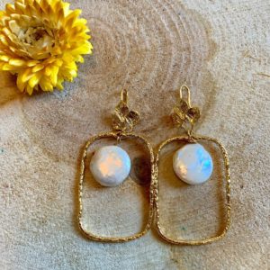 Les boucles d’oreilles Siham sont confectionnées avec des perles en résines. Le fil utilisé est en gold filled le clou d’oreilles et les détails dorés sont dorés à l’Or fin 24 carats.